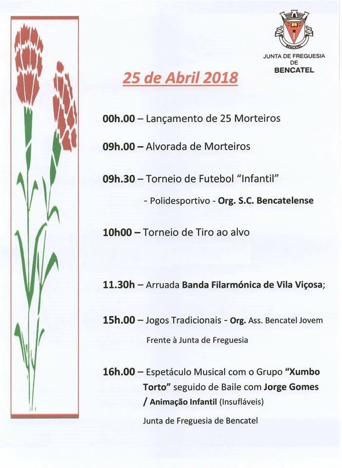 E assim foi o 25 de Abril em Bencatel... O executivo da Junta de Freguesia de Bencatel, agradece a todos aqueles que de uma forma ou de outra quiseram participar nesta festividade que simboliza a Liberdade.