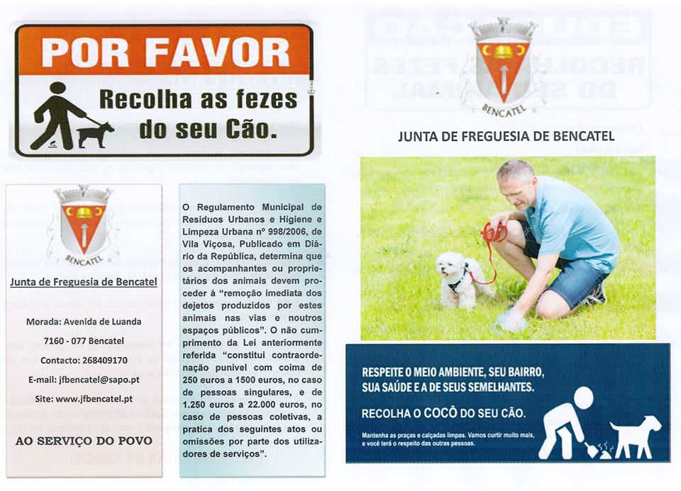 Informa-se que se irá realizar nos dias 10 e 17 de Julho, e no dia 28 de Agosto, pelas 10:30, a vacinação antirrábica e identificação electrónica no Pavilhão da Junta de Bencatel.